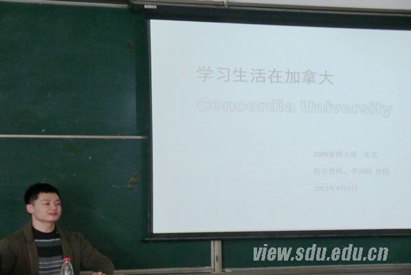 [本站讯]4月5日下午,由山东大学研究生院、党委研究生工作部主办,机械工程学院承办的山东大学第299期“海右”博士生学术论坛在千佛山校区举行。论坛邀请了机械学院09级博士研究生、优秀研究生奖学金获得者宋戈作了题为“学习生活在加拿大Concordia大学”的报告。
