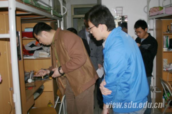 下午两点,学院研究生办公室宋济平在研究生各班班长的陪同下从10#144开始进行宿舍卫生检查。对宿舍仔细检查之后,他对宿舍的物品摆放、网线和电线的走线、宿舍卫生环境等给出了详细要求。随后检查了10#138宿舍,138宿舍是上一年度的文明宿舍,在本学期中他们继续保持良好的生活习惯,在宿舍卫生保持和物品摆放方面为其他宿舍做出了榜样。之后宋济平又相继检查了学院在11号楼和12号楼的相关宿舍,对个别宿舍存在的问题提出了改善建议,并要求相关班级的班长做好通知和监督工作,所在宿舍人员要提高安全和卫生意识,及时纠正麻痹大意思想,争取营造和谐的宿舍生活环境。同时宋济平对宿舍检查过程中凸显的优秀宿舍(10#138,10#112等)提出表扬,呼吁同学们互相学习。