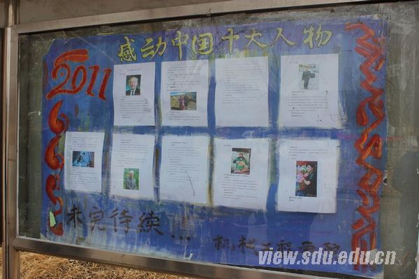 [本站讯]3月1日,机械工程学院举办的“2011年度十大感动中国人物”展正式启动,第一期海报在兴隆山校区海报栏贴出,吸引了众多同学围观。