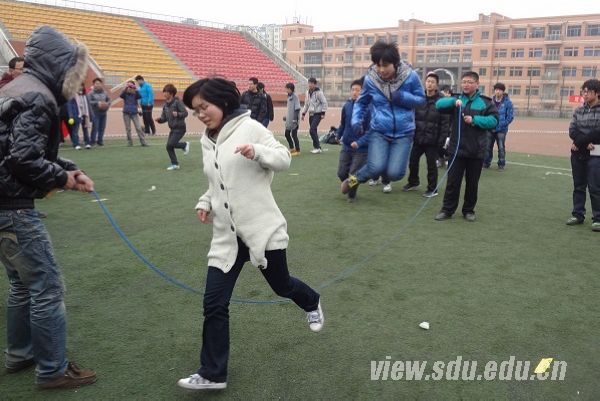 [本站讯]为增进同学之间的交流、提升集体荣誉感及凝聚力,2月25日,土建与水利学院在兴隆山校区风雨操场举办了2012年度春季趣味运动会。比赛项目包括海底捞月、障碍接力、纸杯接力、坐爆气球和集体跳大绳等,比赛分小组进行,每组四队,全程接力。