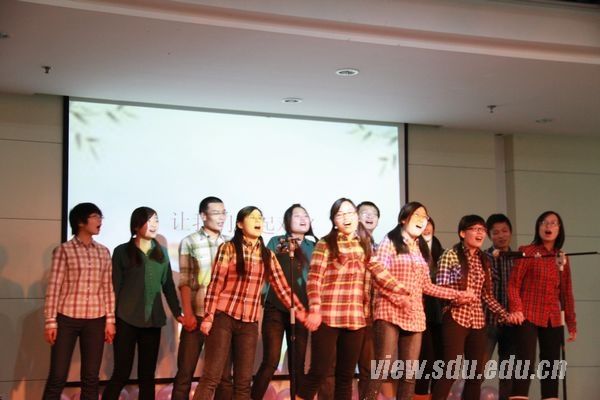 李维林在晚会上致辞,他对同学们所做的工作和努力表示大力支持,对同学们的多才多艺表示了充分肯定,为同学们带来了新年的美好祝愿。晚会节目精彩不断,富有时尚气息与现代感的《T台秀》、三句半《校园生活》、充满童年回忆的歌曲《让我们荡起双桨》、山东快书《大实话》、洋溢着异域风情的《肚皮舞》、独唱《Shall we talk》、让人沉醉的男女对唱《美丽与勇敢》等精彩节目轮番上演,赢得了观众的阵阵掌声与欢笑声。秦川同学带来的歌曲串烧将晚会推向了高潮,引起台下观众的阵阵欢呼;王永军老师也上台献歌,使得现场气氛越加热烈活跃;孙永福带来的跆拳道表演让晚会再次升温,一块块劈裂的木板与砖块使在场的观众近距离感受到令人震撼的力量之美;活力四射的爵士舞《hoot》点燃了全场的激情,充分展示了经济学院研究生的青春与朝气;情景剧《白雪公主》融合了时下的流行元素,幽默诙谐,富有创意,赢得了观众们的阵阵欢笑和掌声。最后,在经济学院2011级全体专业硕士合唱的《朋友》中,晚会落下帷幕。