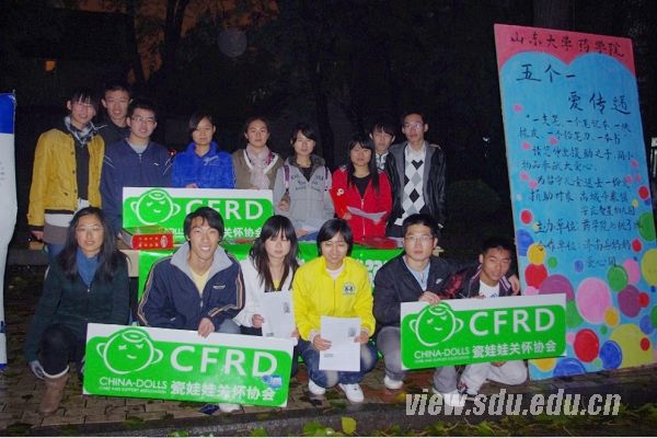 [本站讯]11月18日下午,山东大学“泉心”服务队在趵突泉校区开展关爱“瓷娃娃”的志愿服务宣传活动。 活动中,部分服务队成员在人群中发放宣传单,向同学们认真讲解此次活动的背景、目的及意义,并细致讲述展板上有关“瓷娃娃”的故事;部分队员以“还好,我们的爱并不脆弱”为口号,号召更多同学关注“瓷娃娃”,为他们献上一份爱心。本次活动标志着“泉心”志愿服务队志愿服务活动全面展开。