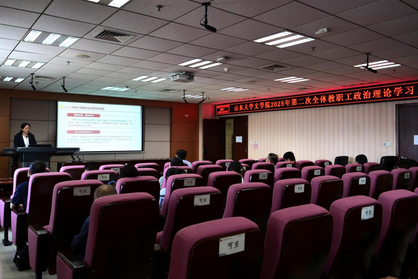 [本站讯]6月30日,文学院在知新楼举行2025年第二次全体教职工政治理论学习。本次会议由文学院党委书记郭春晓主持。院长黄发有,常务副院长马兵,院党委副书记王萌,副院长樊庆彦、王辉,副处级组织员沈文及全体教职工参加会议。