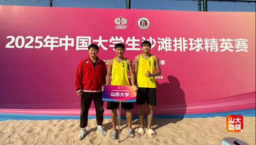 山东大学男子高水平排球队在本次赛事中被分入实力强劲的A组,面对小组内多支曾获全国赛事奖项的对手,在体育学院教练员于瀛的带领下,政治学与公共管理学院2022级本科生韩承巍、2023级本科生马琢然凭借日常训练打磨的默契配合与赛场上的顽强拼搏精神,一路稳扎稳打,最终以小组第二的成绩成功出线。虽在半决赛中与顶尖对手鏖战惜败,但队伍全程展现的坚韧斗志赢得了广泛认可,最终斩获男子组第四名,同时凭借公平竞赛的良好风貌,获评“体育道德风尚奖”。