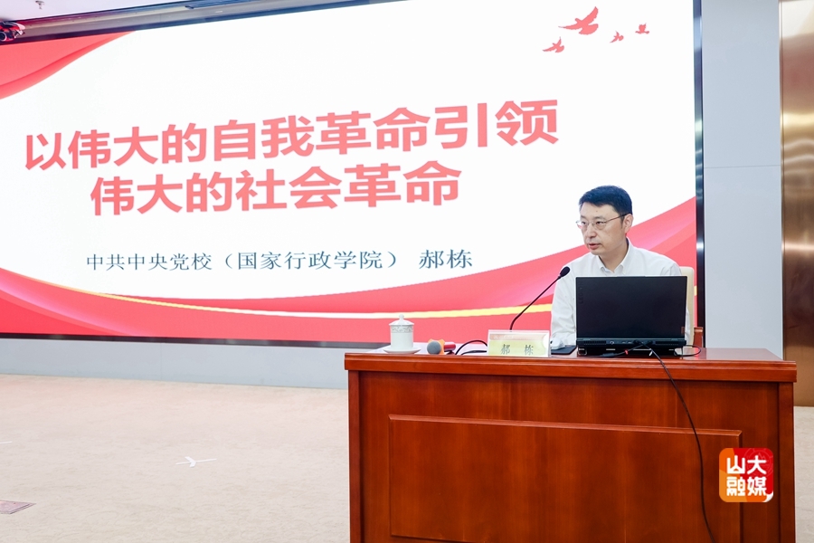 主旨报告环节,中共中央党校(国家行政学院)教授郝栋作题为“以党的自我革命引领伟大社会革命”的报告,中共山东省委党校(山东行政学院)青年优秀教师胡蝶作题为“继承和弘扬伟大建党精神”的报告,研究生院副院长、党委研究生工作部副部长高弟分享了“山大研究生‘学科党建’工作体系及第四批全国高校研究生党建‘双百’创建工作展望”。