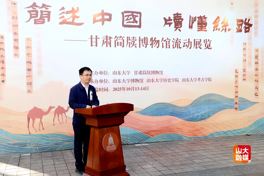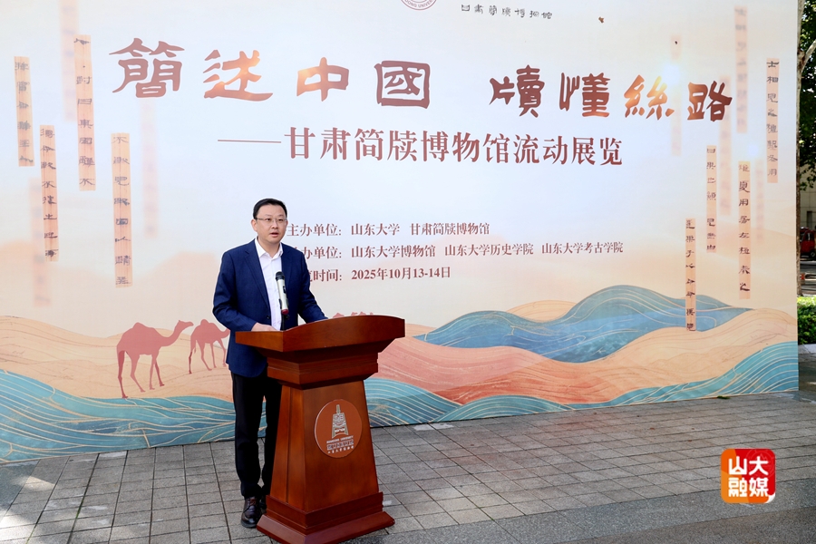 [本站讯]10月13日,由山东大学与甘肃简牍博物馆联合推出的“简述中国 牍懂丝路”流动展览在中心校区开展。校党委副书记李向阳出席仪式并致辞。