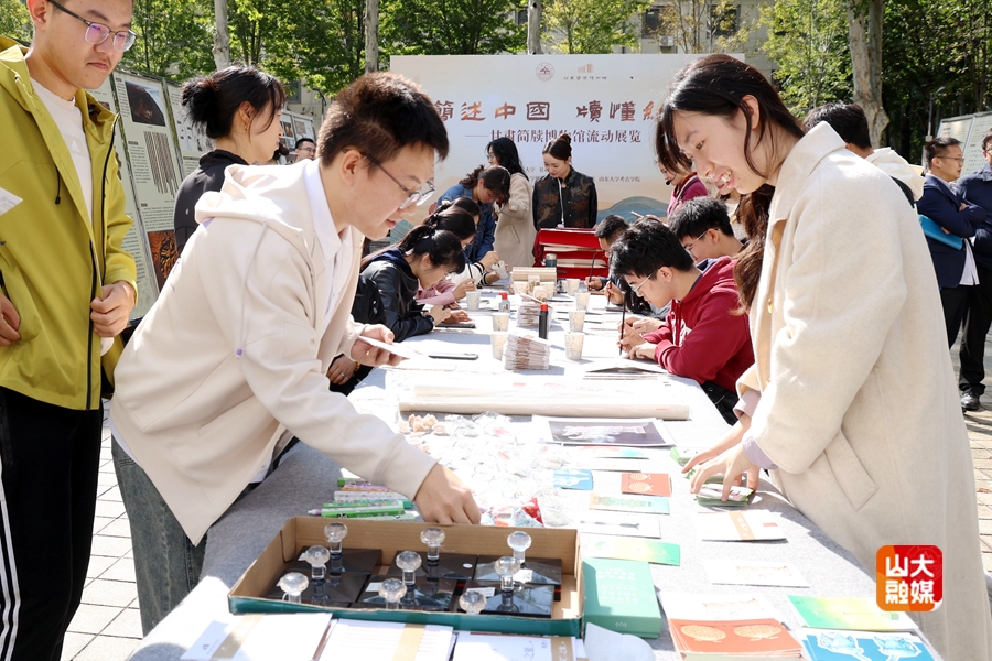 “简述中国 牍懂丝路”展览是自2024年10月山东大学与甘肃简牍博物馆战略合作关系建立以来的一次生动实践。该展旨在追溯简牍作为文字载体的千年历史,展现陆上与海上丝绸之路的繁荣往来,还原汉代边塞生活的烟火气息,呈现古代文书的书写智慧与书法艺术。展览设置24个主题版面,以“简牍时代”“简述丝路”“边塞人家”“书于简帛”四大专题为脉络,辅以“家国情怀”“民风习俗”“社会生产”“邮驿交通”四个维度的细节呈现,构建起立体鲜活的简牍文化空间。展览期间还举行《铭记历史:甲午海战暨甲午沉舰水下考古展》,及“简册编联和书写”、简牍文化主题讲座、简牍文化走进附中校园等相关活动。