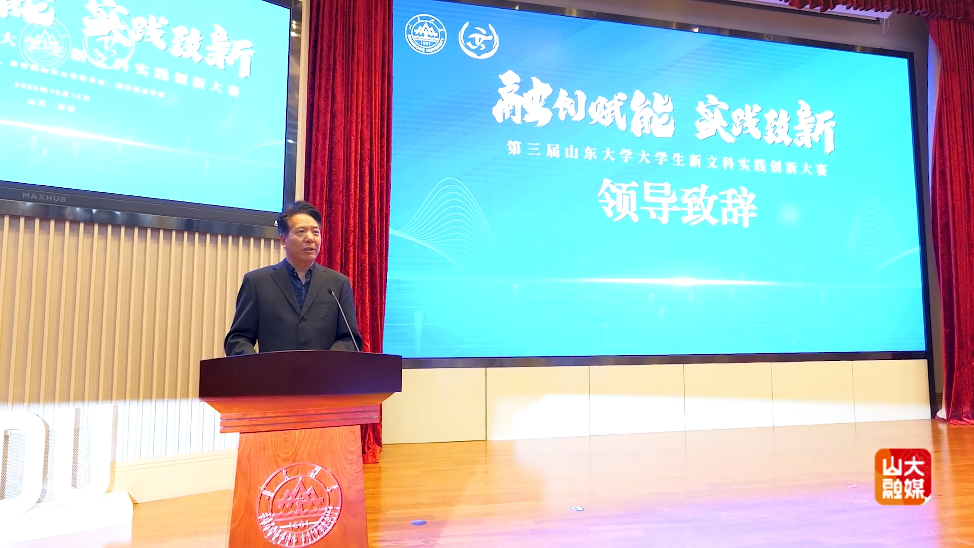 [本站讯]10月12日,第三届山东大学大学生新文科实践创新大赛暨2025年大学生新文科实践创新大赛校内选拔赛决赛在中心校区举行。副校长曹现强出席颁奖仪式并致辞。