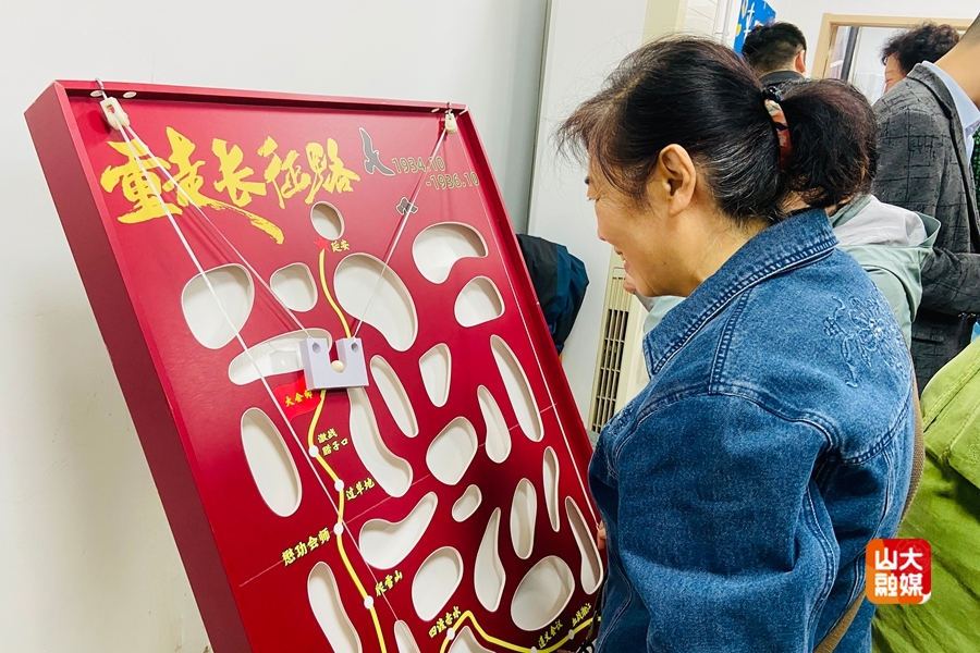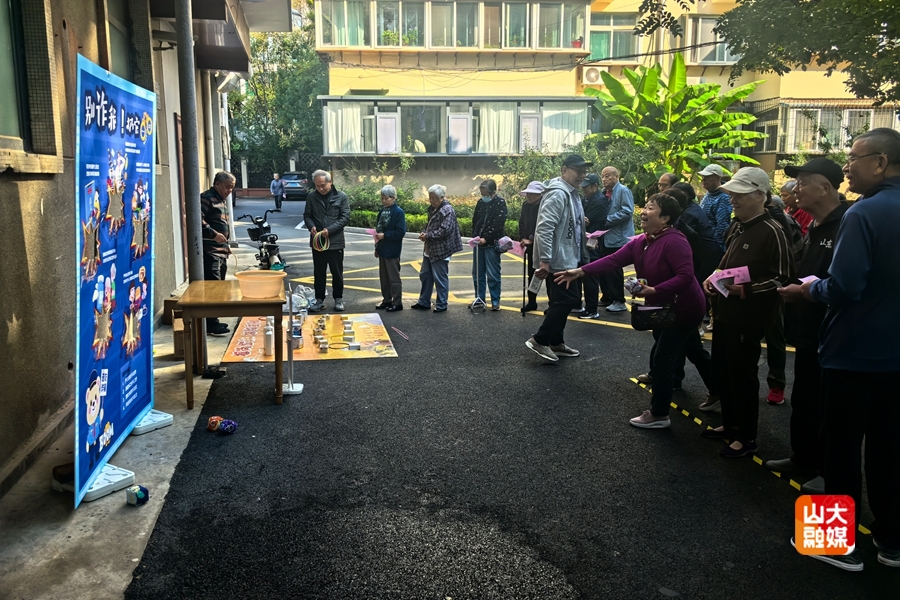 “重走长征路”项目创新融入红色主题教育,老同志们操控沙盘模型中的“红军号”滚球跨越“雪山草地”“大渡桥横”等标志性场景,在趣味闯关间重温革命岁月,感悟奋斗精神。通过老同志喜闻乐见的方式,推动红色教育常态化,让重阳节活动更具教育意义和历史厚重感。“反诈掷沙包”项目前人头攒动,老同志们手持沙包,瞄准标有“虚假投资”“仿冒公检法”“保健品诈骗”等宣传标语的目标靶,展开激烈“进攻”。这种寓教于乐的形式既增强了防范意识,又营造了轻松氛围,在“掷沙包”间筑牢安全防线。
