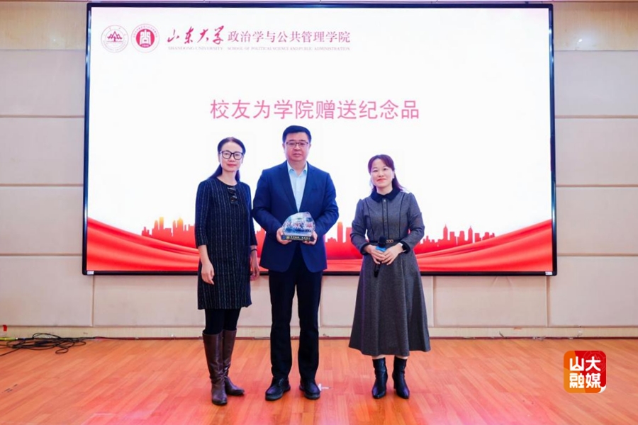 1960届校友、学院退休教师杨尊明通过视频方式致辞,深情回顾了在山东大学求学与执教的岁月,特别是亲历科学社会主义系从创立到发展的历程。他的讲述饱含历史的厚重与传承的温度。这段真挚感人的分享,将几代政管人的情感紧密相连,深深打动了在场师生。