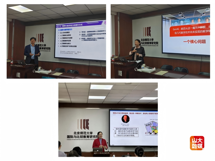 北京师范大学牛晓杰、山东大学李瑞琳、山东大学徐唱、山东大学崔依冉、上饶师范学院万昆、山东大学王晶心、山东大学叶沁心、上海师范大学吴旻瑜、华东师范大学吕雪坤、中国人民大学附属中学崔鹏、云南师范大学张晓姝等学者,围绕AI多智能体、数字素养、人机协同教学、跨学科学习、生成式人工智能(GAI)赋能教学等作研究报告。
