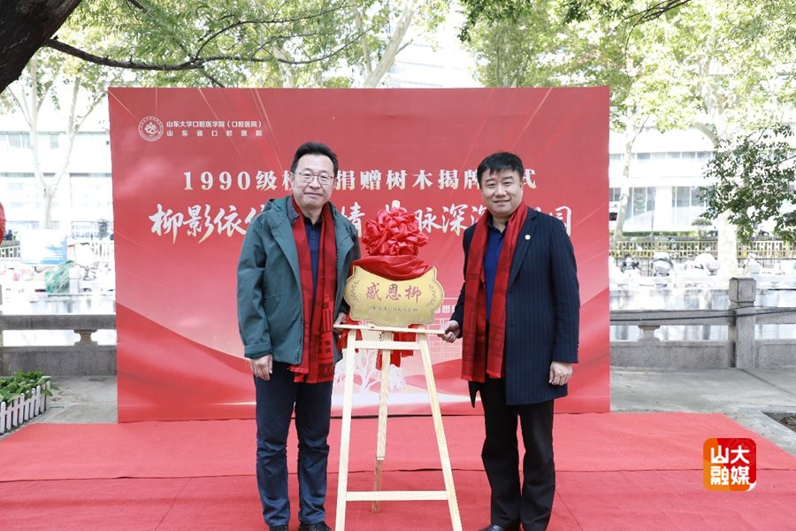 会后,参会人员在学院(医院)楼前,以柳树为纽带,举行了感恩柳换牌仪式。