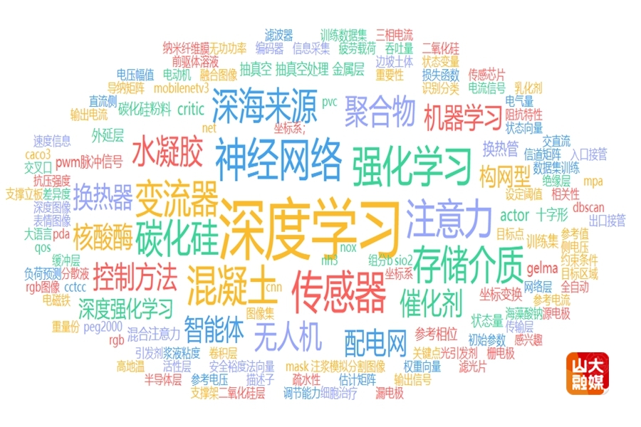 对2025年第一、二季度山东大学公开(公告)专利进行聚类分析,主要涉及人工智能、隧道工程、新能源、化合物合成等领域。