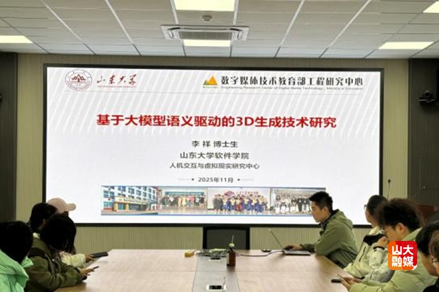 主题联学环节,齐鲁交通学院党员代表张奕晨聚焦党的二十届四中全会精神,深入解读前沿技术与新质生产力在重大基础设施领域的关键作用,引导师生以党建成效赋能国家战略,以科创融合激发发展新动能。软件学院人机交互与虚拟现实研究生党支部书记汪冰倩分享了“一核领航,三新驱动,双翼并展”建设模式,阐述了将科研优势转化为党建动能的实践经验。齐鲁交通学院硕士岩土第一党支部副书记王楠欣围绕“研岩匠心”品牌内涵,阐述了支部深耕党建科研融合模式,分享了以党建引领科研与人才培养的实践经验。在交流研讨环节,软件学院李祥以“基于大模型语义驱动的3D生成技术研究”为题开展学科交叉分享,深入解析技术要点,与会党员围绕专业问题展开研讨,氛围浓厚。