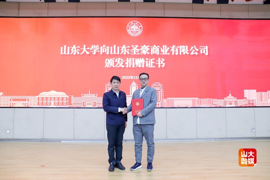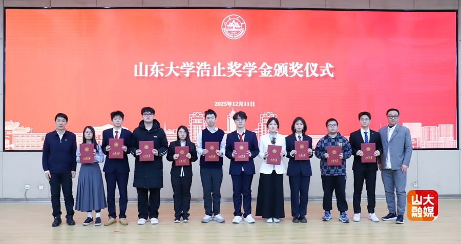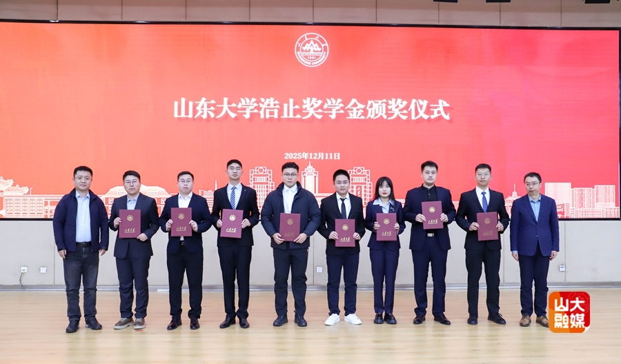 [本站讯]12月11日,“山东大学浩止奖学金”颁奖仪式在兴隆山校区举行。山东大学党委副书记张帅、山东圣豪商业有限公司董事长杜灏之出席颁奖仪式。