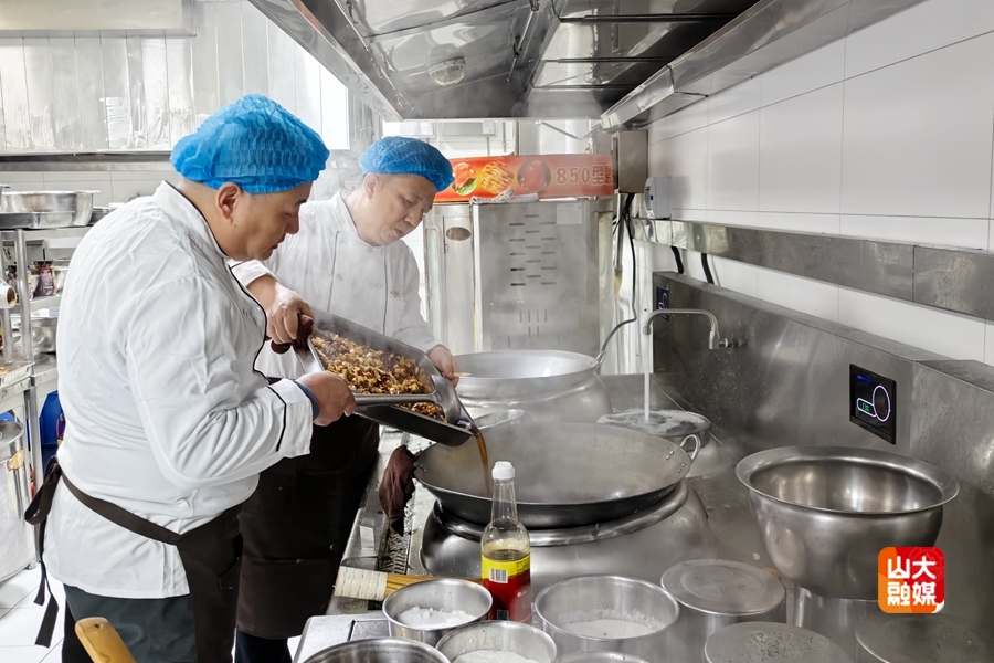 [本站讯]近日,山东国宴大师进校园活动在千佛山校区舜园食堂正式启幕,来自南郊宾馆的资深鲁菜烹饪大师方伟、闫俊带领专业团队,以技艺传授与特色菜品展示为核心,为师生带来一场鲁菜文化盛宴。