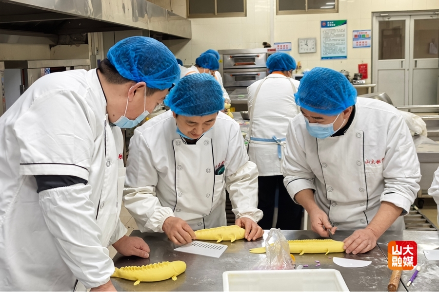 活动期间举行了座谈交流会。威海校区饮食中心主任谢军红从食堂运营管理、产品创新研发、食品安全保障、师生服务提质等方面作了经验分享。与会人员聚焦食堂运行瓶颈、师生餐饮需求升级、行业发展机遇突破、服务模式创新优化等方面,展开深入交流。此外,济南校本部、青岛校区技术骨干还学习了麻辣香锅、糗糕、紫薯芋泥年糕、甑糕的制作技艺,分享了油条特色制作技法,实现了烹饪技艺的双向互通。