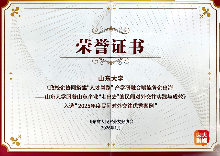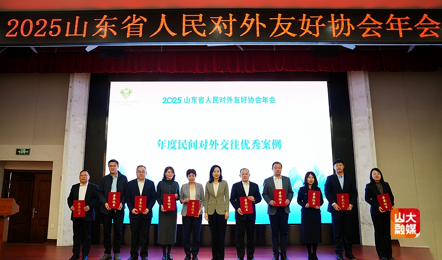 [本站讯]1月15日,2025山东省人民对外友好协会年会在济南召开。大会表彰了“年度十大民间对外交往优秀案例”和“年度十大民间对外交往推荐案例”,国际事务部报送的《政校企协同搭建“人才丝路” 产学研融合赋能鲁企出海》荣获优秀案例并作典型发言。