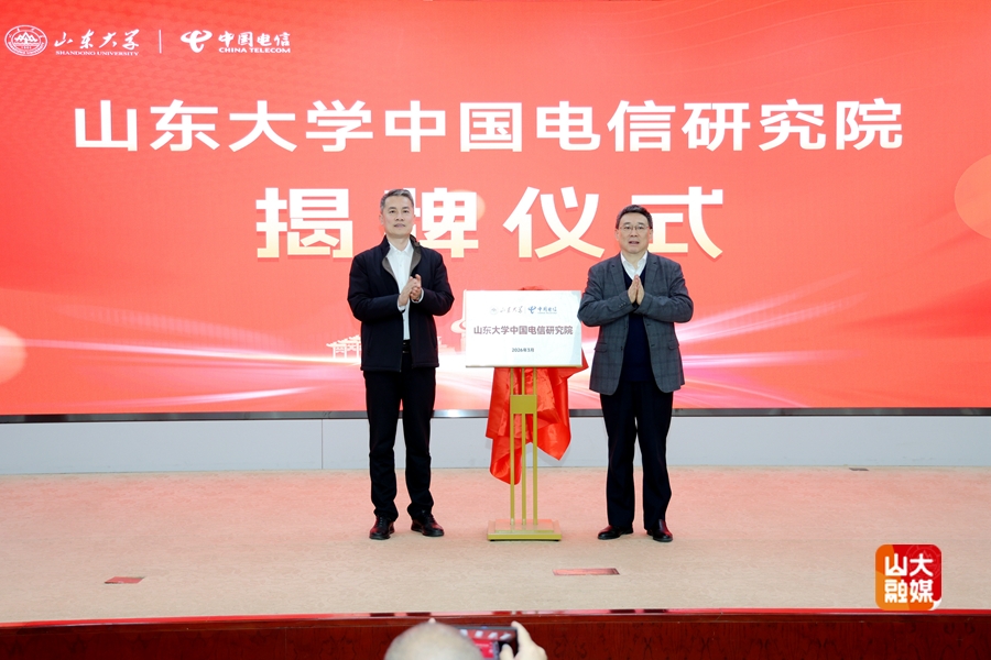 活动中,吴臻、李鹏共同为山东大学中国电信研究院揭牌,研究院首批重点研究方向发布。