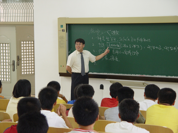针对第一个问题,同学们在展校长的鼓励下积极发言,热情高涨,从不同的角度分别谈了自己对一个好老师的看法和意见,认为一个好的老师应该具备以下方面的素质和能力:一是注重学生的研究型学习。二是在教学方法上应体现出一种互动性。三是在教学内容上注重理论和实践相结合。四是老师的形象应表现出学者风度,讲课时运用普通话。五是有提高学生分析问题,解决问题的能力。展校长听了学生的踊跃发言后,作了总结,对同学们提出的观点表示认同和赞赏。展校长还特别强调了互动性和研究型学习等问题,他说,教学上的互动性是一个非常丰富的内涵,这种互动性不仅是指课上和课下的互动,而且包括老师和学生的互动,学生可以以丰富的想象力提出许多问题,从而激发老师对一些问题的思考等。一个好的老师不仅仅要让学生学习书本知识,而且要指导学生充分利用课堂之外的环节,比如在教材的使用上应体现核心教材与N个“教材”相结合等。