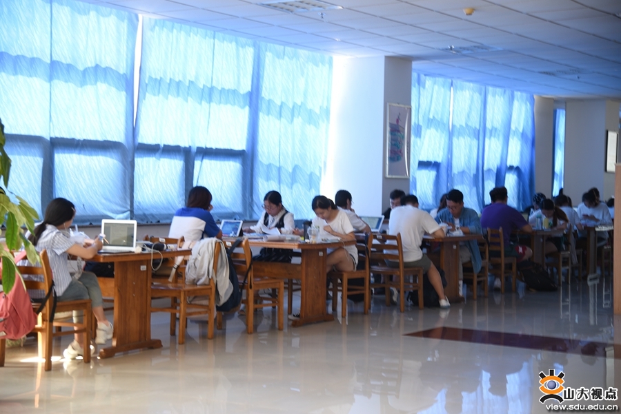 威海校区法学院社会工作专业本科生高颂沉浸在图书馆中,为考研奋斗拼搏。