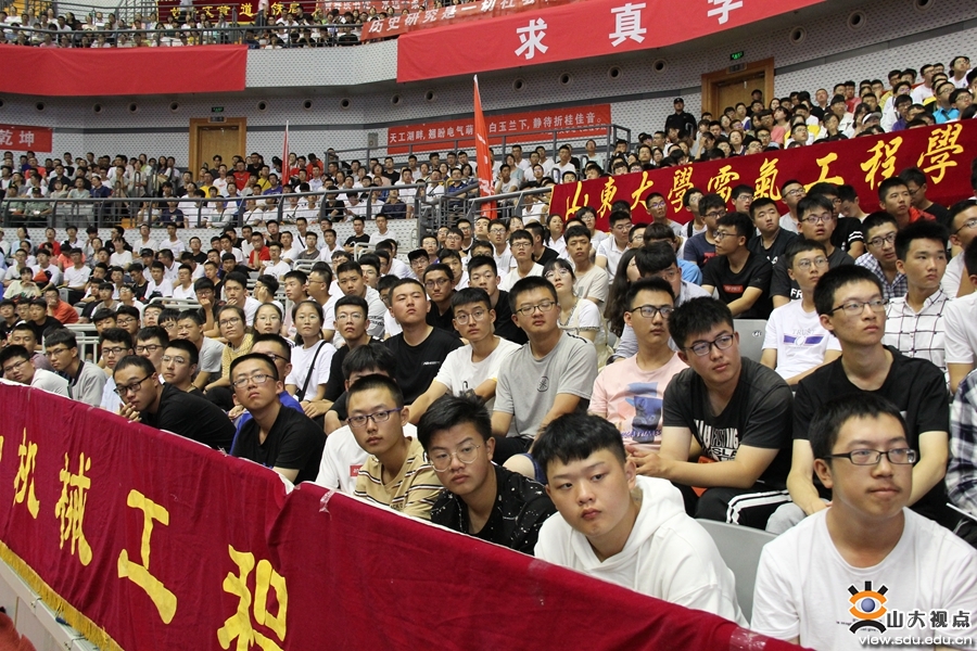 典礼前播放了学生工作部、广播电视台等单位制作的“欢迎2019级新同学”“大学之道”等暖场视频,有的把大家带回到几天前的迎新报到现场,有的则把百年山大的魅力整体、全面地展示给新同学。一次次掌声、一波波欢呼,典礼现场一片热闹、沸腾。典礼最后,全场起立奏唱了《山东大学校歌》。