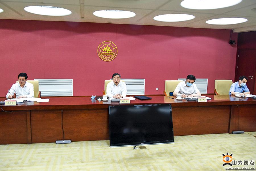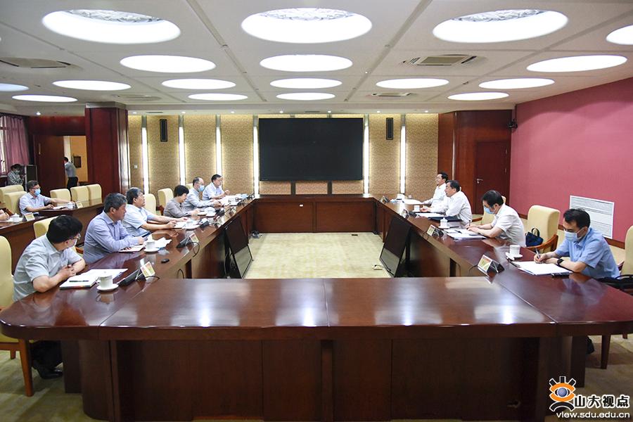 [本站讯]6月18日下午,山东省委常委、济南市委书记孙立成来山东大学调研工作,在中心校区进行了座谈。校党委书记郭新立主持座谈会,校长樊丽明作学校工作情况汇报。