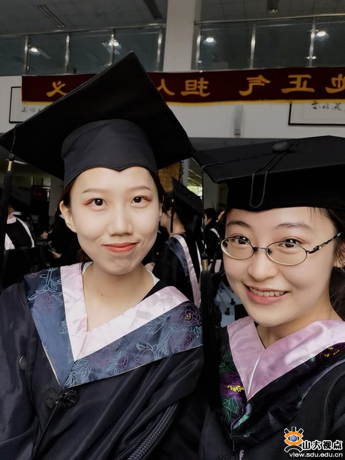 视频分会场或者通过云端收看,在或不在,2020届毕业生都是今天最闪亮的主角。材料学院2020届毕业生孙心笛和同学们一起在兴隆山校区分会场收看了直播。她说:“屏幕阻挡不了学校对我们的祝福,山魂海韵,家国天下,听到这句话时,我为我是山大人而自豪。”