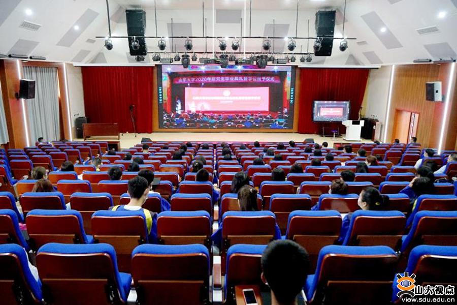 [本站讯]6月28日,山东大学举行2020年研究生毕业典礼暨学位授予仪式。典礼全程采用一校三地连线直播的形式举行,主会场设在中心校区科学会堂。全体研究生毕业生分别在主会场、分会场或通过观看网络视频直播共赴毕业盛典。