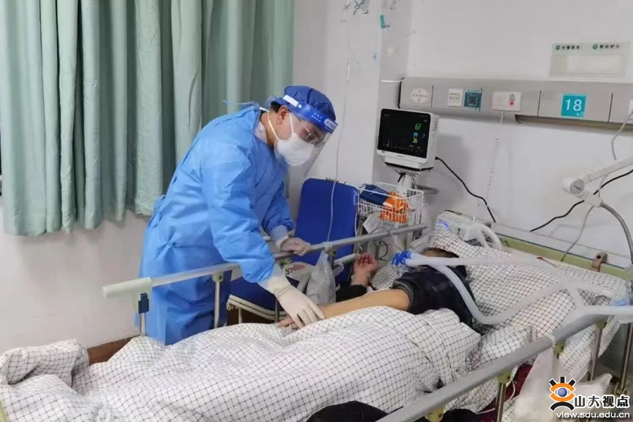 山东大学第二医院神经内科主任医师、崇礼楼综合治疗病区负责人谢兆宏正在查房。崇礼楼作为医院最早收治新冠感染患者的地方,目前已经整建制转为综合治疗病区,自12月8日至今,一直处于满员超负荷运转状态。这里收治的都是有基础病合并新冠感染的重症患者,作为病区负责人,谢兆宏与同事们一起,从清晨忙到深夜,一刻也不敢怠慢。