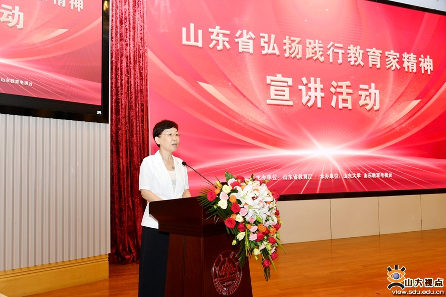 [本站讯]为深入贯彻落实党的二十大和党的二十届二中、三中全会精神,大力弘扬践行教育家精神,9月4日,在第40个教师节即将来临之际,由山东省教育厅主办,山东大学、山东教育电视台承办的山东省弘扬教育家精神宣讲活动在山东大学举办。校党委书记任友群、省教育厅副厅长孙晓筠出席活动并讲话。校党委副书记陈宏伟主持宣讲活动。