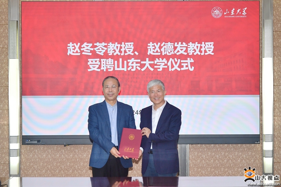 [本站讯]10月17日,赵冬苓、赵德发受聘山东大学讲席教授、特聘教授仪式在中心校区举行。校长李术才出席仪式并为赵冬苓教授、赵德发教授颁发聘书。