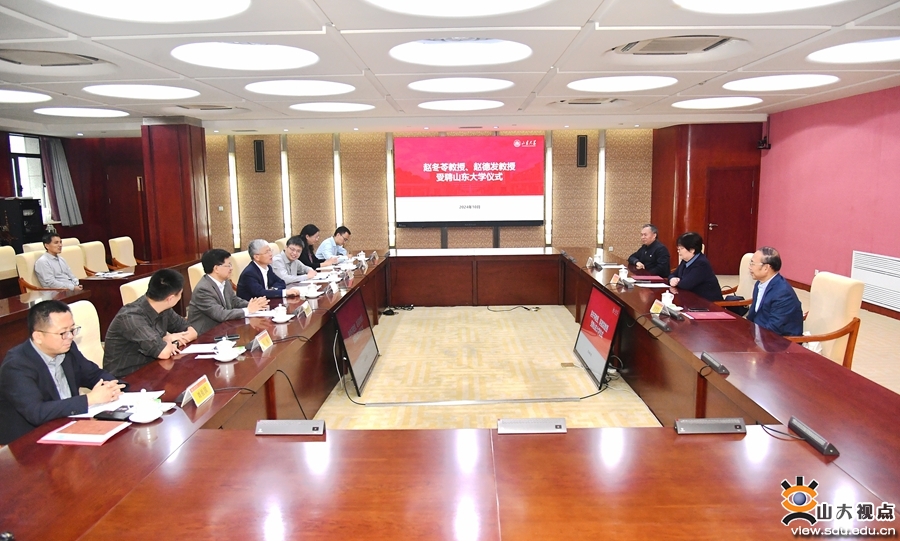 聘任仪式由人事部部长、人才工作办公室主任刘健主持。文学院院长黄发有介绍赵冬苓教授、赵德发教授情况。文学院、文艺美学研究中心、人文社科研究院、人事部(人才工作办公室)等单位有关负责人参加活动。