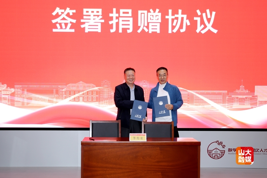 李术才向情系母校发展的焦震校友表示衷心感谢。他表示,山东大学数学学科是国内外具有重要影响力的科学研究中心和人才培养中心,几代学人薪火相承、踔厉奋进,为国家培养了大批专业基础扎实、创新能力卓越的优秀人才。学校将以焦震校友捐赠设立的“山东大学数学高层次人才培养发展基金”为契机,进一步紧密对接国家重大战略需求,打造具有全球竞争力的人才培养体系,以深化学科交叉和产教融合推进前沿领域创新突破,推动数学学科向更高质量发展,为加快建设中国特色世界一流大学,全面服务教育强国建设作出更大贡献。