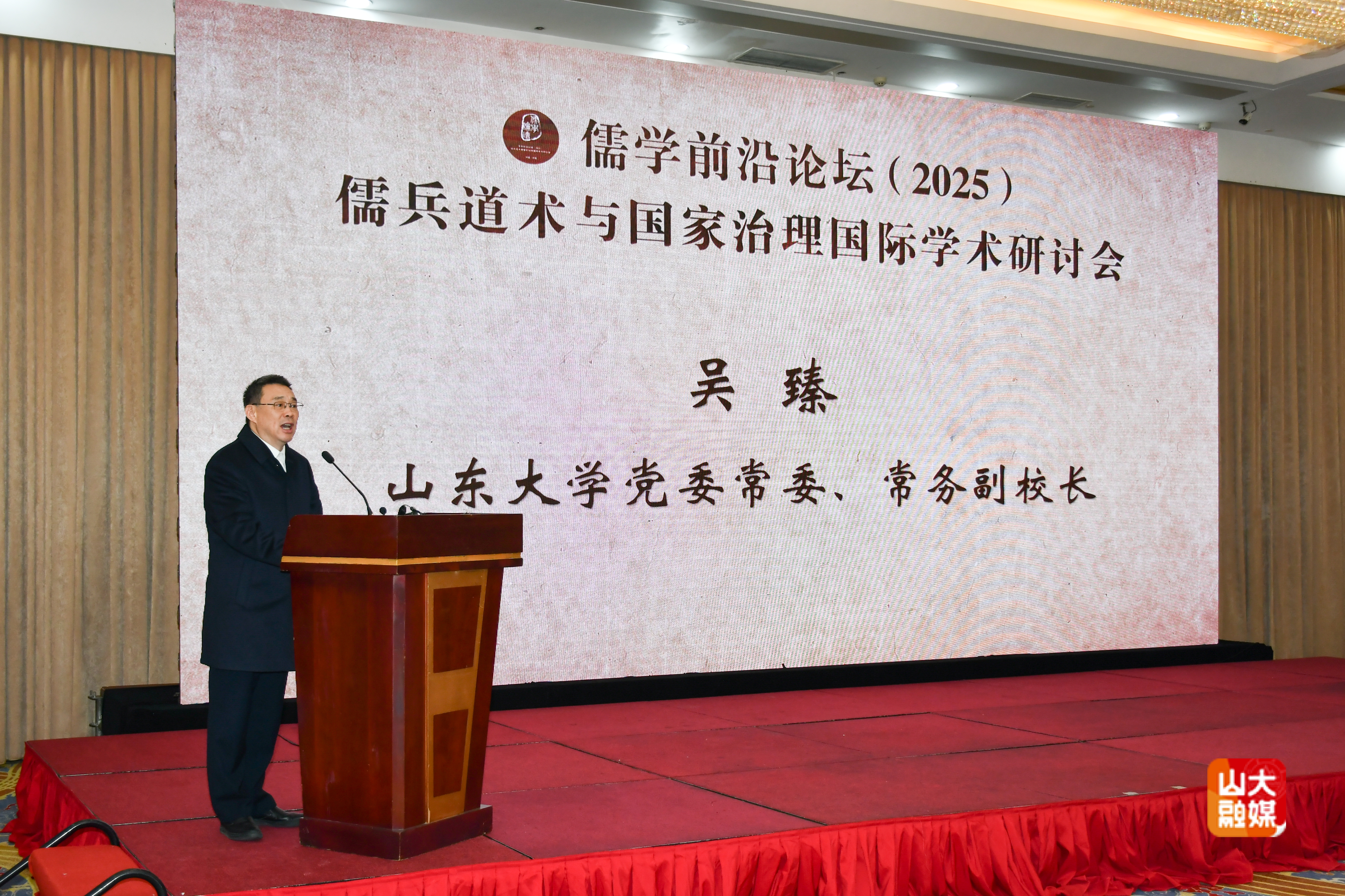 [本站讯]10月25日至26日,由国际儒学联合会、儒家文明省部共建协同创新中心主办,国际儒学联合会山东大学研究基地、山东大学儒学高等研究院承办的“儒学前沿论坛(2025)儒兵道术与国家治理国际学术研讨会”在济南举行。常务副校长吴臻;全国政协常委,国际儒学联合会副会长兼学术委员会主任,山东大学讲席教授、儒学高等研究院院长王学典;国际儒学联合会秘书长马箭飞;中共山东省委宣传部副部长张同海出席开幕式。