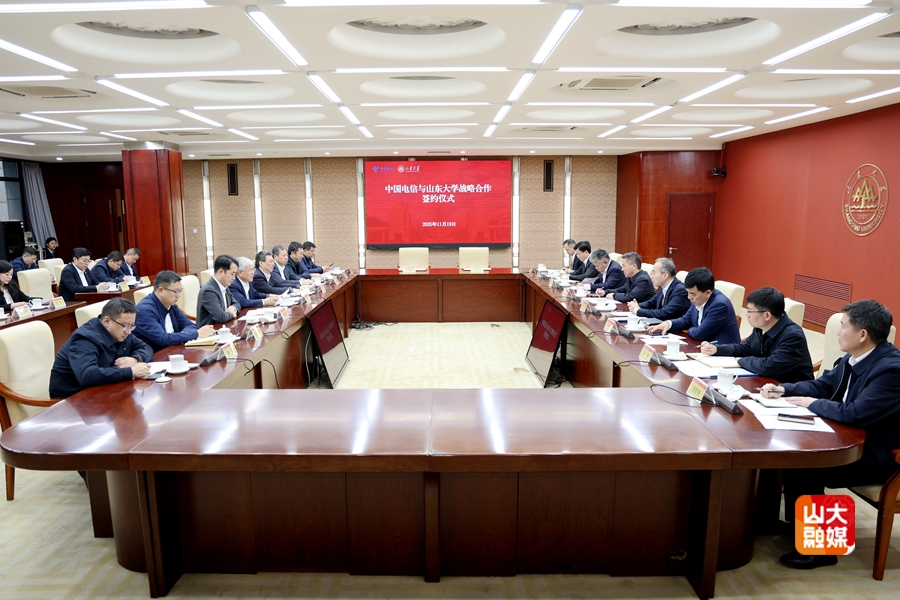 [本站讯]11月19日,山东大学与中国电信集团有限公司战略合作签约活动在山东大学中心校区举行。山东大学校长李术才,中国电信总经理刘桂清出席活动。