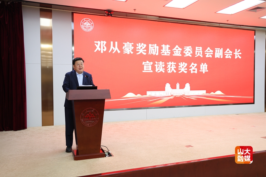 邓从豪奖励基金委员会副会长王飞宣读获奖名单。吴臻、江桂斌、马大为分别为邓从豪学术贡献奖、邓从豪青年创新奖、邓从豪教育教学奖获得者颁奖。山东省商业集团党委书记、董事长、1983级校友王绪超,段秀峰,山东润华物业管理有限公司董事长、1988级校友杨立群共同为邓从豪优秀学生奖获奖者颁奖。
