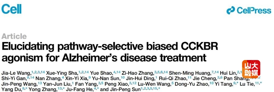 [本站讯]11月20日,山东大学基础医学院/北京大学孙金鹏教授团队联合香港城市大学教授贺菊芳,北京大学教授张勇、副教授铁璐,香港中文大学(深圳)教授杜洋和北京宣武医院唐毅,在《细胞》(Cell)在线发表研究论文“Elucidating pathway-selective biased CCKBR agonism for Alzheimer's disease treatment”。该研究从临床提出问题,通过临床样品检测与动物模型相结合的方法阐释了CCKBR下游不同G蛋白信号通路在AD进程中的功能,并通过解析内源性激动剂CCK8s激活CCKBR不同G蛋白(Gs、Gq、Gi)的分子机制,揭示了CCKBR信号偏向性的分子生物学基础,并以此成功设计出具有治疗潜力的Gq偏向性激动剂3r1,通过动物模型与转录组阐明3r1可通过CCKBR-Gq-Plcb4-Adam10信号轴抑制神经/突触损伤,清除Aβ沉积,为阿尔茨海默病(AD)的精准治疗提供了新策略。