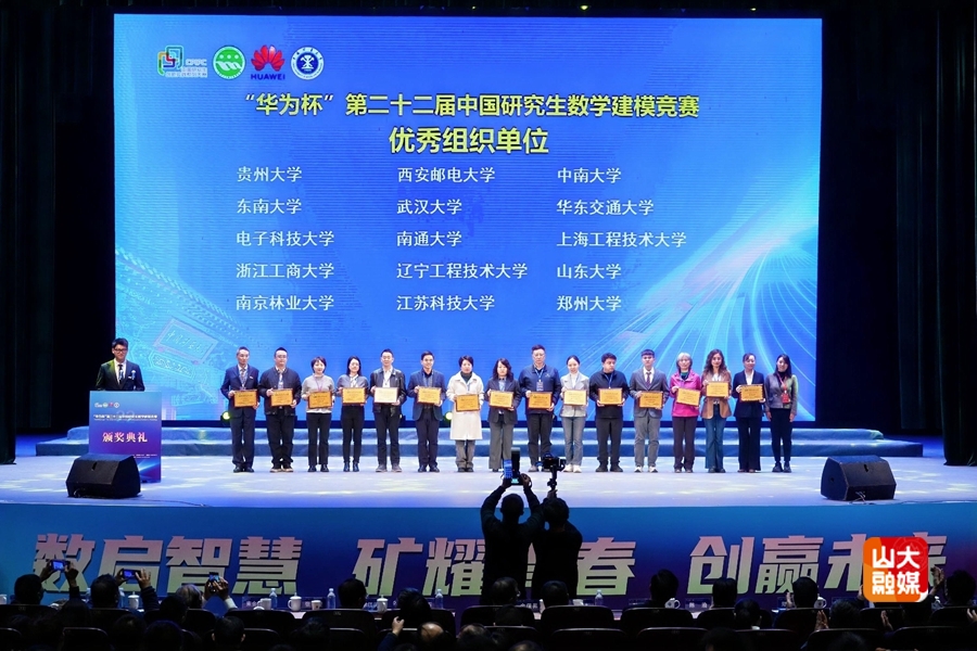 [本站讯]12月7日,第二十二届中国研究生数学建模竞赛颁奖典礼在中国矿业大学举行。山东大学在本届比赛中共获国家奖81项,其中一等奖2项、二等奖36项、三等奖43项,获奖比例和团队数均位居国内高校前列。此外,山东大学再次荣获优秀组织单位。