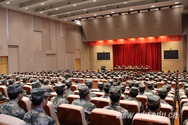 [本站讯]3月15日,山东大学2014年度国防生军政训练开训动员暨“牢记强军目标、献身强军实践”主题教育部署会在中心校区举行。山东省军区副司令员尚庆生少将、山东大学校领导方宏建出席会议。