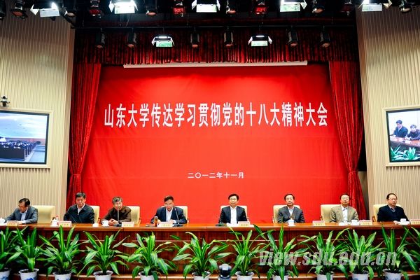 徐显明在主持会议时说,党的十八大的召开具有重要的历史意义,一是在中国大国化的重大历史节点上举行,是一次推动国家发展承前启后、继往开来的大会。二是大会的召开统一了思想,凝聚了人心,是一次动员全党全国各族人民在新的历史条件下夺取中国特色社会主义新胜利的大会。三是对中国未来发展做出了“五位一体”的重大战略部署,选举产生了新的一届党的中央领导集体,是一次掀开党领导全国各族人民全面建成小康社会、实现中华民族伟大复兴新篇章的大会。党的十八大对教育工作也给予了高度重视,对办好人民满意的教育提出了明确的要求,为我国高等教育的改革发展指明了方向。省委常委扩大会议传达学习了党的十七届七中全会、党的十八大和十八届一中全会精神。中共山东省委召开的全省领导干部大会,进一步传达学习贯彻党的十八大和十八届一中全会精神。按照中央和省委的工作部署要求,我们今天召开全校传达学习党的十八大精神大会。