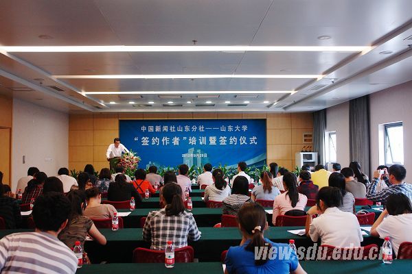 [本站讯]9月25日下午,中国新闻社山东分社——山东大学“签约作者”培训暨签约仪式在山东大学中心校区举行。山东大学党委副书记尹作升、中新社山东分社社长邱江波出席仪式并致辞。 尹作升在致辞中谈到,中新社自成立60年来,始终服务党和国家工作大局,已经成为向海外华文媒体提供中国新闻和资讯的重要渠道,成为促进海峡两岸和全球华人新闻交流的纽带和桥梁。尹作升表示,长期以来,中国新闻社与山东大学一直保持良好合作关系,中新社一直关心关注山东大学的发展,特别在宣传报道方面,给予山大诸多的支持与帮助,山大也竭尽所能为中新社提供最真实、最具新闻价值的新闻素材,并为中新社输送了优秀的高层次人才。尹作升强调,签约作者这种形式,是山东大学与中新社深化合作、共谋发展的又一个有益尝试,必将进一步推动中新社与山东大学合作的深入开展。尹作升希望山东大学首批签约的30名“签约作者”尽快进入角色,充分利用好中新社这一平台,更好地宣传和推广山大,为山东大学社会影响力的提升贡献力量,同时,要珍惜机遇,不断锻炼和提高自身素质与能力。 中新社山东分社社长邱江波致辞并作培训报告。邱江波具体介绍了中国新闻社发展情况。他表示,山大和中新社一直保持良好的合作关系,山大是中新社山东分社的重要“战略客户”。他欢迎山大学子到中新社实习和工作。签约仪式后,中新社相关负责人对30名签约作者进行了业务培训。 会议由山东大学党委宣传部部长李平生主持。中新社山东分社,山东大学党委宣传部、党委学工部、齐鲁医院、第二医院有关部门负责人出席会议,30位签约作者,山东大学新闻网——山大视点网站、山东大学报、学生在线、青春山大等校内媒体记者参加了培训。 中新社签约作者是中新社山东分社与山东省各地市、部门、企业、高校等合作采编发布新闻的新的合作方式,中新社向签约的作者授权进入中新社山东分社新闻采编系统直接上传新闻稿件,经编辑审核后将会在中新网发布。山东大学是中新社以“签约作者”方式加强合作的第一所高校。这种合作方式为学校的对外宣传工作提供了新的空间和渠道,是学校与社会媒体合作发展模式的新的探索。本着优中选优的原则,学校在相关单位遴选出30名优秀老师和学生,成为首批“签约作者”。