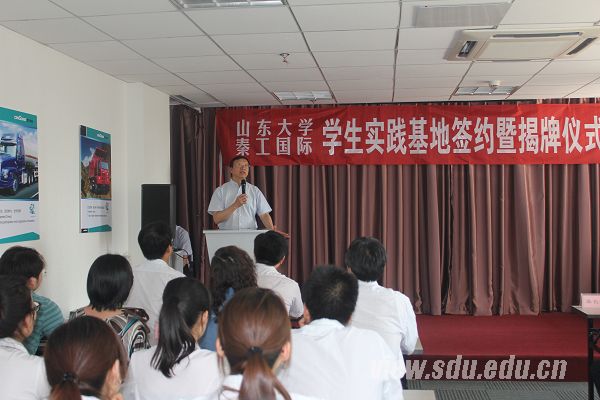 方宏建在致辞中对山东大学的基本情况作了介绍,重点介绍了“三跨越四经历”人才培养举措。他希望双方依托学生实践基地平台,精心策划、认真组织,实现合作共赢、共同发展。秦长岭表示,秦工国际此次与山大合作共建学生实践基地,是新形势下企业发展进步的内在要求和实现双赢的战略举措,可实现资源共享、优势互补。仪式上,双方共同签署《山东大学与济南秦工国际贸易有限公司共建学生实践基地合作协议书》。校团委、经济学院、外语学院有关负责人参加仪式。