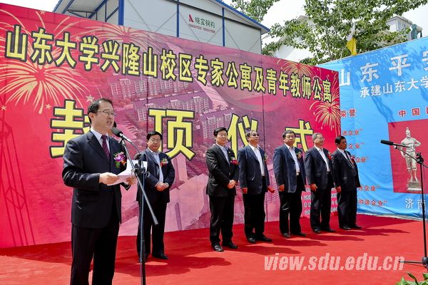 [本站讯]4月28日上午,山东大学兴隆山校区风和日丽,春风荡漾,经过248天的紧张施工,青年教师公寓和专家公寓顺利封顶。校党委书记李守信出席仪式并宣布封顶,校长徐显明在仪式上讲话。