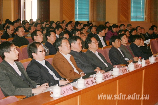 会前,学校纪委为全校副处级以上干部配发了《关于实行党风廉政建设责任制的规定》、《直属高校党员领导干部廉洁自律“十不准”》等学习资料。全校副处级以上干部,齐鲁医院、第二医院院领导班子成员,组织部、人事处、计财处、产业集团、设备处、后勤处、基建处、研究生院招生办公室、本科生招生办公室、新区建设管理办公室正科级以上干部近500人参加了会议。威海分校设分会场。