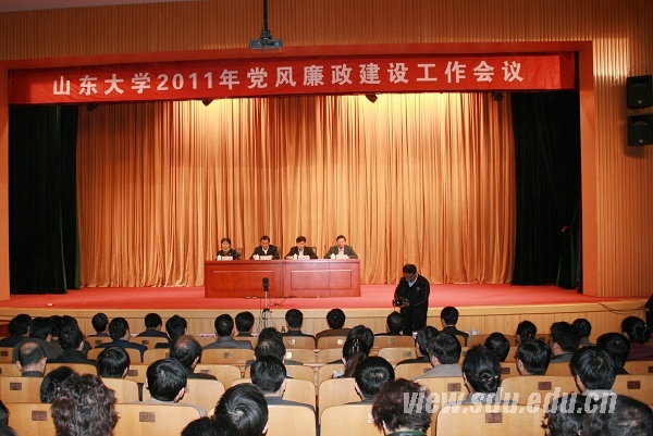 [本站讯]4月8日下午,山东大学召开2011年党风廉政建设工作会议。会议主要任务是深入学习贯彻十七届中央纪委第六次全会、全国教育系统党风廉政建设工作会议和省纪委九届七次会议精神,总结2010年学校党风廉政建设和反腐败工作,研究部署2011年工作任务。山东大学党委书记朱正昌对2011年党风廉政建设和反腐败工作作了全面部署。校长徐显明传达了胡锦涛总书记及有关领导同志的讲话精神。学校党委常务副书记尹薇主持会议。在济的学校党政领导出席会议。