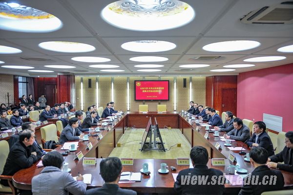 徐闻表示,山东大学具有很强的学科综合优势、人才汇聚优势、文化引领优势和国际合作优势,双方合作对山东省委党校的学科建设、研究生培养、人才队伍建设、智库建设、马院建设、创新工程建设都有很大的推动作用。当前全国上下正紧密团结在以习近平同志为核心的党中央周围,为实现“两个一百年”奋斗目标,实现中华民族伟大复兴的中国梦续写着新篇章;山东正在加快建设文化强省,努力实现在全面建设小康社会中走在前列的宏伟目标;全国和全省党校工作会议的召开,提供了前所未有的发展契机。双方在这样的时代背景下开展合作,才有了这样一种超越自体,对于各自职责任务的开放式思考、大局式思考和高点定位的使命担当。山东省委党校将全力推进与山东大学在人才培养、课题研究、实践转化上的合作,共同打造领导干部培养平台、研究成果转化平台、理论成果应用平台、理论人才成长平台,充分发挥省委党校的优势,助力山东大学“双一流”建设。希望双方共同努力,为加快经济文化强省建设、实现全面小康社会进程中走在全国前列作出贡献。