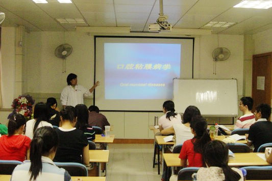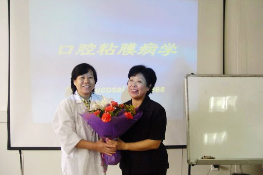 9月10日上午,尹薇到口腔新楼502教室听取了《口腔粘膜病学》课程。课前,尹薇向授课教师戚向敏教授送花表达节日祝贺。课上,戚向敏教授课程讲解深入浅出,尹薇与同学们一起认真聆听,并不时地做课堂记录。课后,尹薇对戚向敏教授讲授的课程给予充分肯定,并对同学们提出希望。她说,同学们肩负着治病救人的重任,应该努力学好自己的专业知识,熟练掌握临床技能,不断提高科研创新能力,增强社会责任感,争做国际竞争型人才。