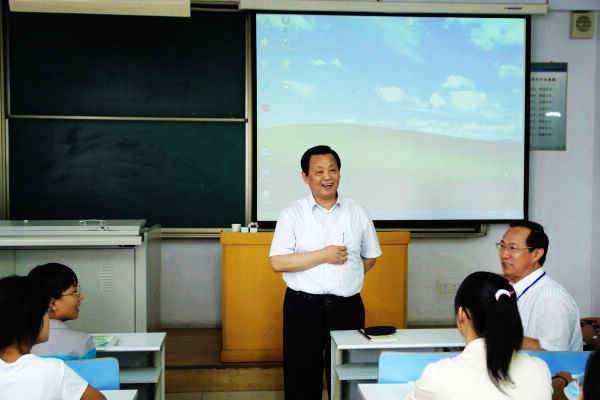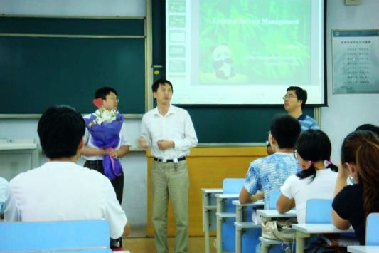 9月10日上午,陈炎来到理综楼302教室,听取了管理学院徐凤增老师主讲的《旅游服务管理》课程。课前,陈炎向徐凤增老师表达了节日的祝贺并送上了一束百合花。课后,陈炎结合欧美国家和亚洲国家教学方面的不同对课堂情况做了点评,并希望同学们在课堂上多交流,多发表自己的意见。同时,建议学校建立旅游管理学生实践基地,多给旅游管理同学提供实践的机会。