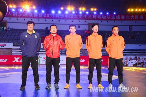 [本站讯]4月19日,2016-2017特步中国大学生五人制足球联赛暨啦啦队选拔赛(北大区赛)在山东大学落下帷幕。山东大学党委副书记仝兴华,中国大学生体育协会校园足球工作部、大学生足球联赛主管曹源出席闭幕式。